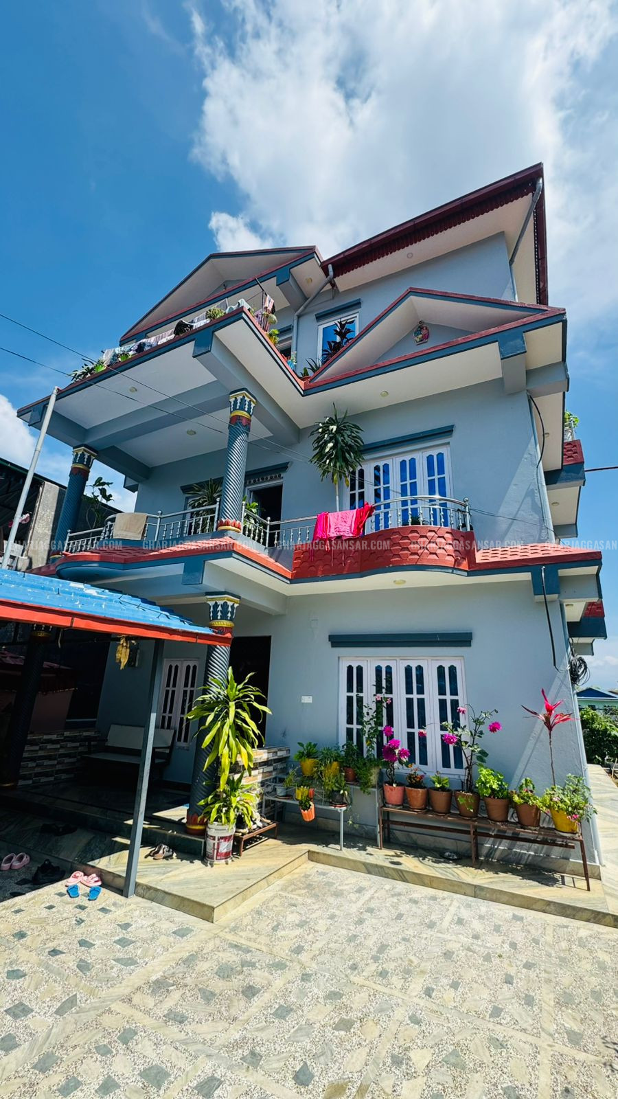 ground floor= 2BHK ,1 common toilet bathroom 1 attach toilet bathroom first floor = 1BHK, 1 common toilet bathroom 1 attach toilet bathroom second floor= 3B ,1 common toilet bathroom 1 attach toilet bathroom 40 hat mohoda